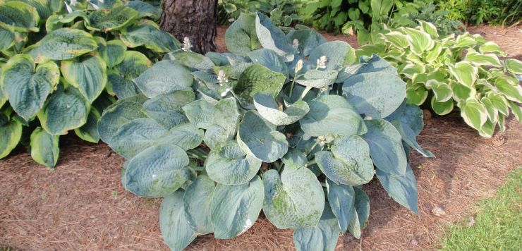 Хоста. Настоящая королева тенистого сада! Ее легко узнать по огромным листьям, которые в зависимости от сорта могут быть разного цвета: от нежно-зеленого оттенка с желтыми прожилками до изумрудного цвета с кремовой каймой. Цветы (белого или синего цвета) собраны в метелку, и по форме очень схожи с лилиями, только гораздо меньше. Хоста неприхотливое растение, отлично растет в тени и не нуждается в повышенном внимании со стороны садовода.